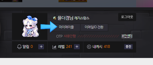 1. 메이플 공식 홈페이지에서 로그인후 '마이메이플'을 눌러주세요.