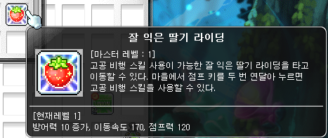 메이플 슈피겔라의 딸기농장 4일차 일일 의뢰를 끝내고, '잘 익은 딸기 라이딩'을 얻었습니다!