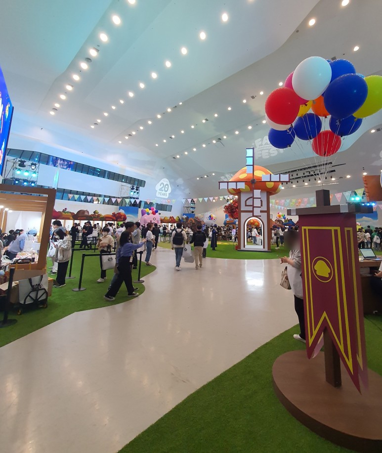 가운데 주황버섯 풍차를 기준으로 포토존, 게임존 등이 있으며 양 끝에는 수많은 부스들이 있다.