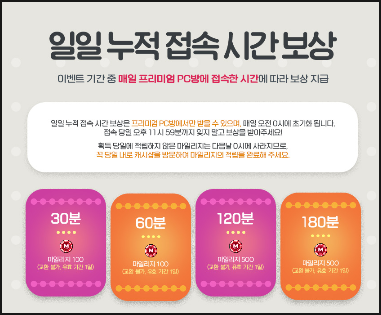 - 일일 3시간 채우면 총 2천 마일리지 주네요.