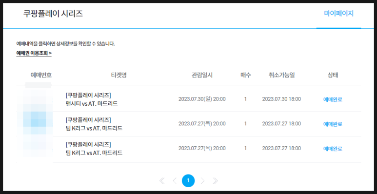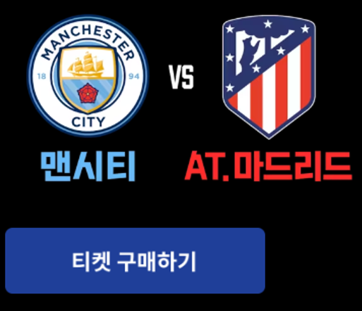 쿠팡플레이에서 금일 진행한 맨시티 ATM(아틀레티코 마드리드) 경기 티켓팅 성공했습니다!!