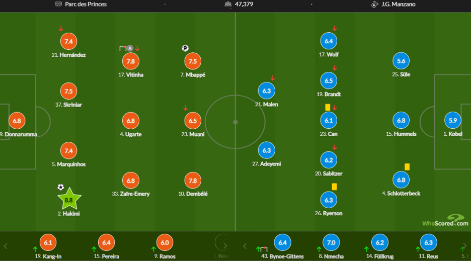 이어서 PSG (파리 생제르맹) 도르트문트 평점을 살펴봅시다.