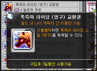 폭죽마 라이딩은 할로캣 쿠폰 2개로 얻을 수 있습니다.