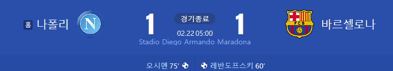 스타디오 디에고 아르만도 마라도나에서 펼쳐진 챔스 16강 1차전! 나폴리와 바르셀로나의 맞대결!