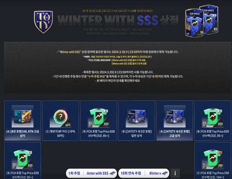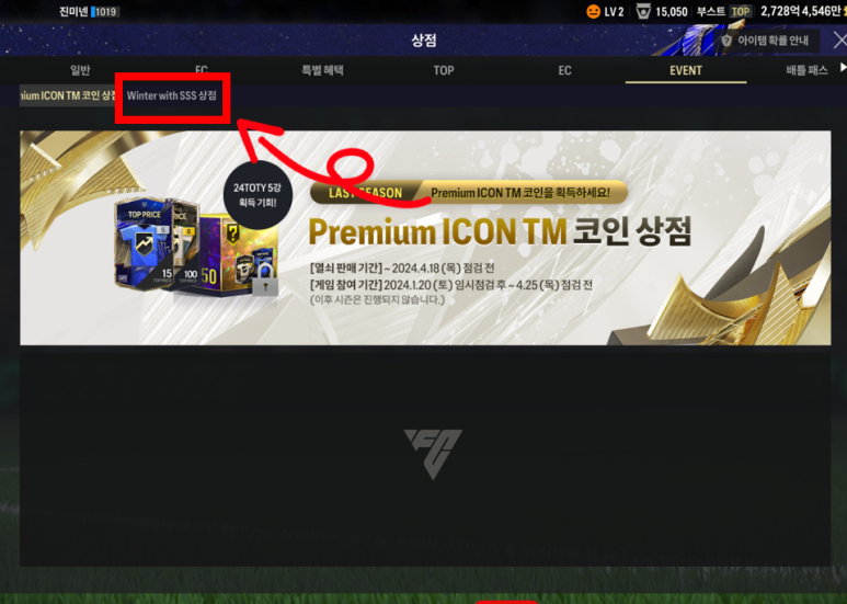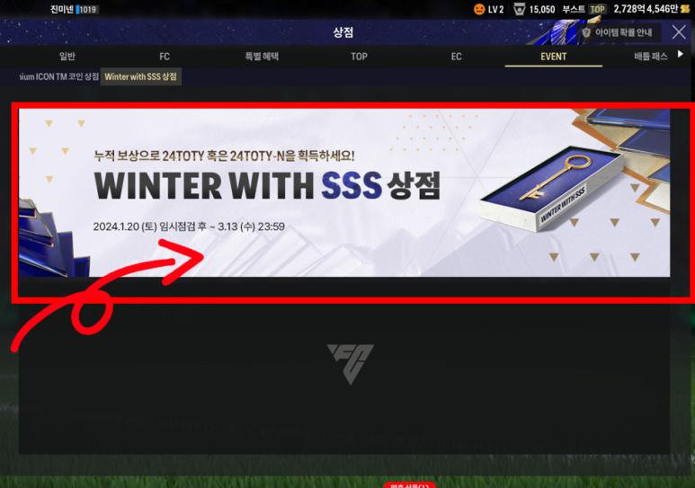 오늘은 FC온라인 (피파4) Winter with SSS상점 (윈터 SSS) 접속 방법 및 열쇠 사용법을 알려드리겠습니다.