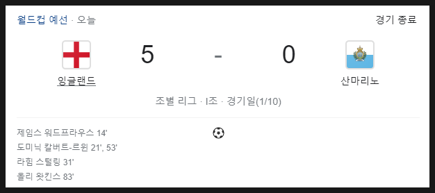 잉글랜드 산마리노 평점을 살펴봅시다.