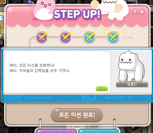 예티 모든 미션을 끝내고 예아 일체를 받았습니다.