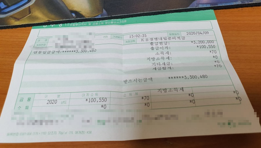 안녕하세요. 몇일전 군 적금 만기일이 되어 은행에 수령하러 갔습니다.