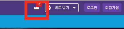 1. 트위치에 가장 먼저 접속하면 왕관 모양이 있습니다. 클릭 해주세요.