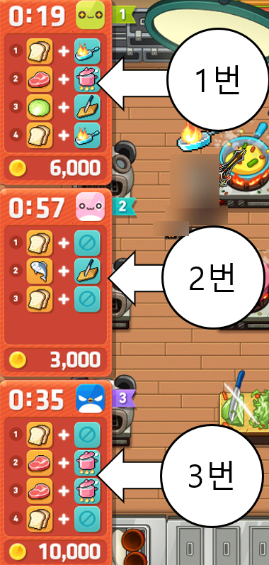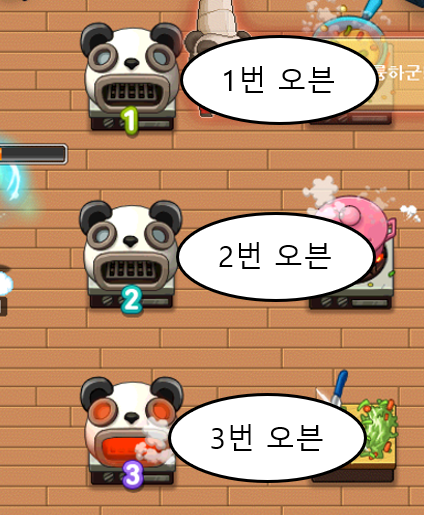 자기가 1번을 정했다면 1번 오븐에 1번 레시피를, 2번을 정했다면 2번 오븐에 맞는 재료를 넣어야 합니다.
