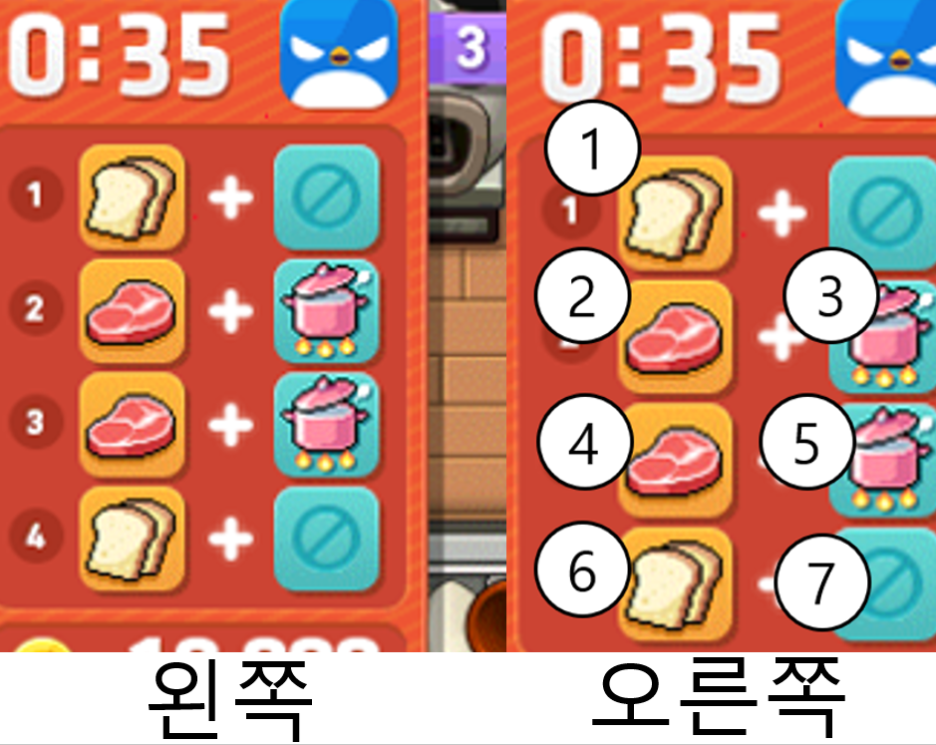 0:35는 제한시간입니다. 쉽게말해 제한시간안에 메뉴를 만들어야 합니다.