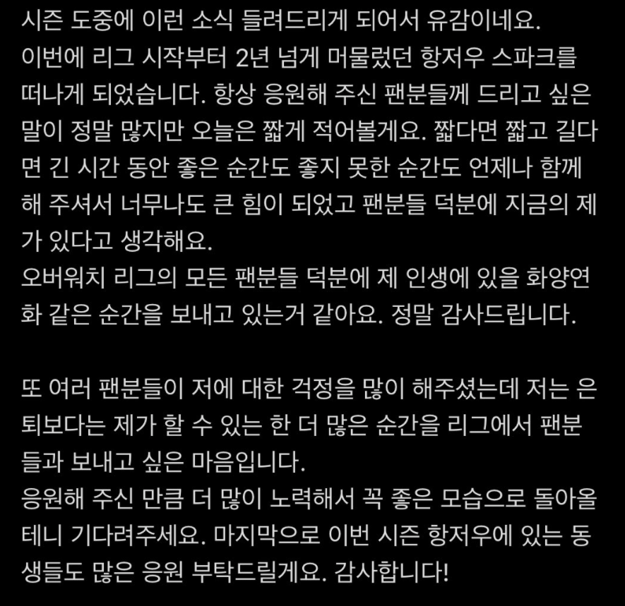 은퇴 소식은 아니라서 추후에 어떤팀을 가게 될지 지켜봐야 할 것 같네요.