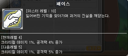 마지막으로 패이스 스킬은 일정 레벨 달성시 캐릭터위에 전구가 뜹니다.