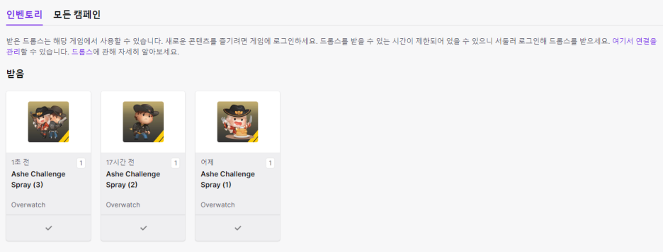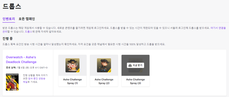 트위치 드롭스로 얻을 수 있는 '데드락 스프레이'를 모두 얻었습니다.