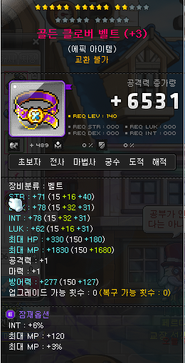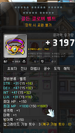 여기서 렙제가 제일 높은 '골든 클로버 벨트'(140렙제)에 쓰는걸 추천드립니다.