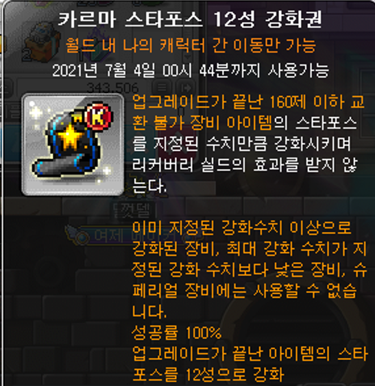 버닝섭에서 주는 카르마 스타포스 12성 강화권 사용하는 곳을 추천해드립니다.