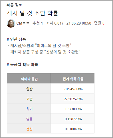 2. 아바타 확률 https://cafe.daum.net/odin/DDw4/15