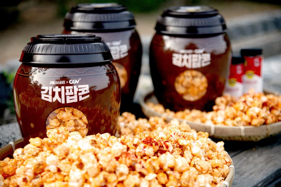 CGV에 출시한 신규맛 '김치팝콘', 말그대로 김치 시즈닝과 팝콘을 섞은 맛.