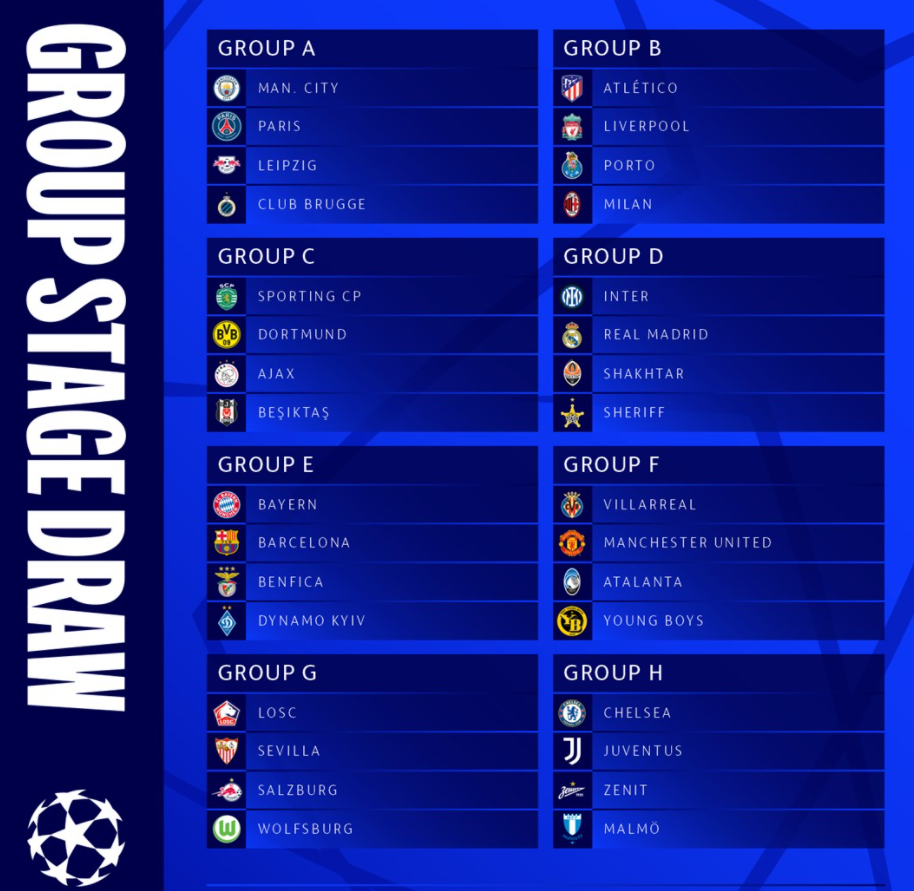 21-22시즌 챔스 조추첨이 끝나고 모든 조가 편성되었습니다.