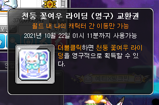 천둥 꽃여우 라이딩은 최초 획득시 '월드 내 공유'가 가능합니다.