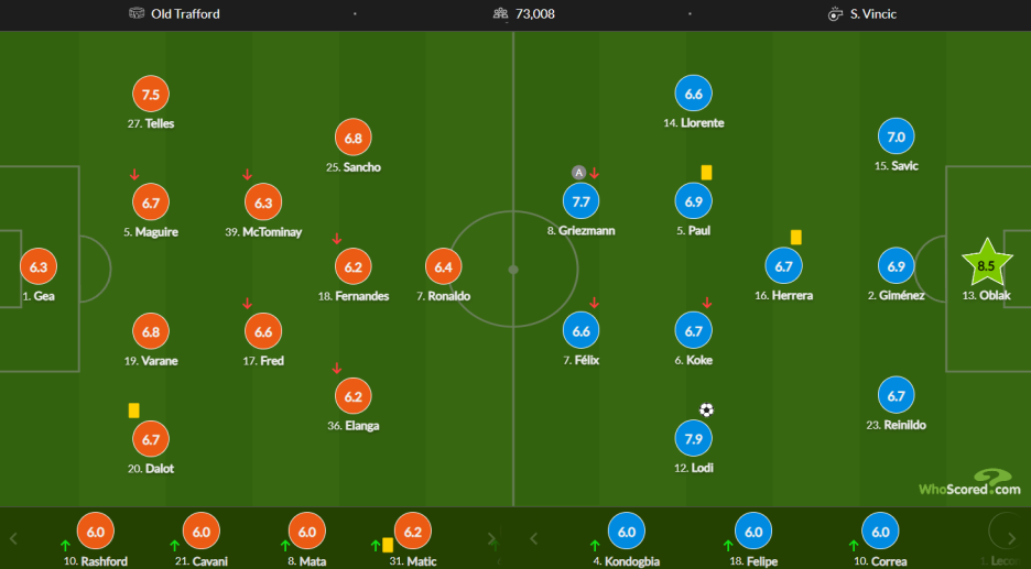 이어서 맨유 AT마드리드 평점을 살펴봅시다.