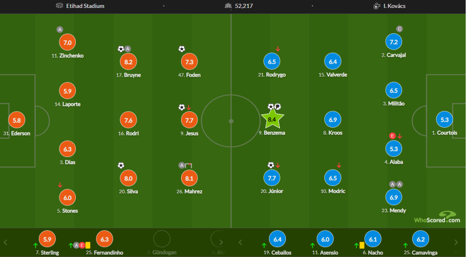 이어서 맨시티 레알 1차전 평점을 살펴봅시다.