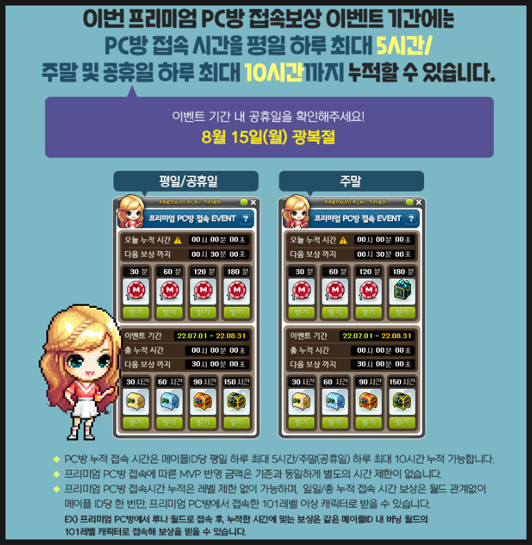 메이플이 2022 이그니션 업데이트를 맞아 프리미엄 피시방(PC방) 이벤트를 이번에도 진행합니다!!