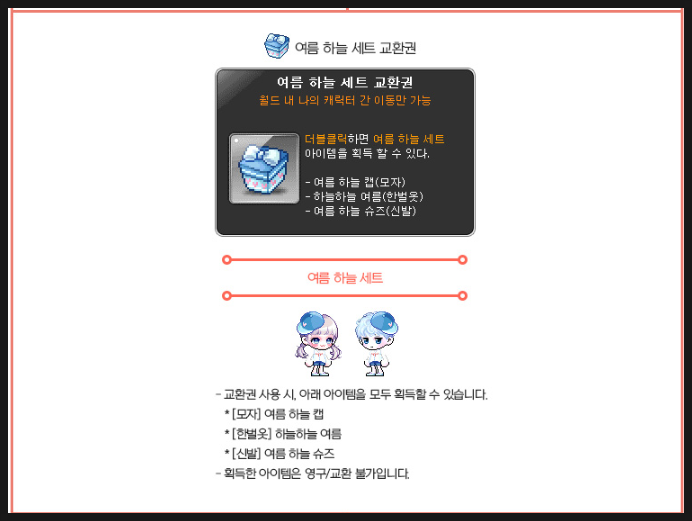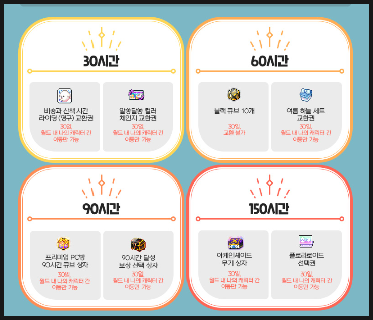 60시간을 채울시 여름 하늘 세트 교환권 및 블랙큐브 10개를 얻을 수 있습니다.