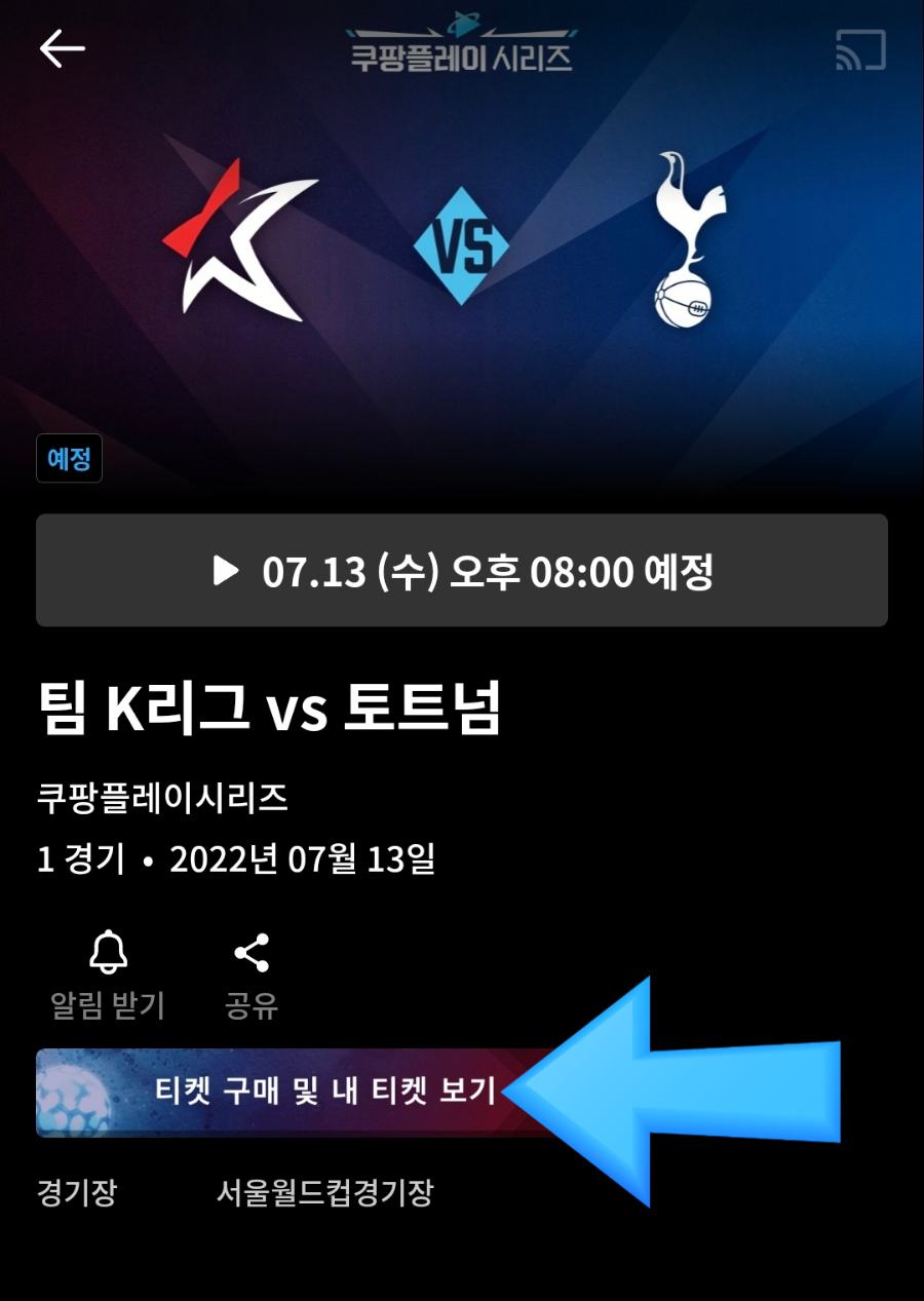 현재 쿠팡플레이에서 토트넘 내한 티켓을 '스마트 티켓'으로 발권할 수 있습니다.