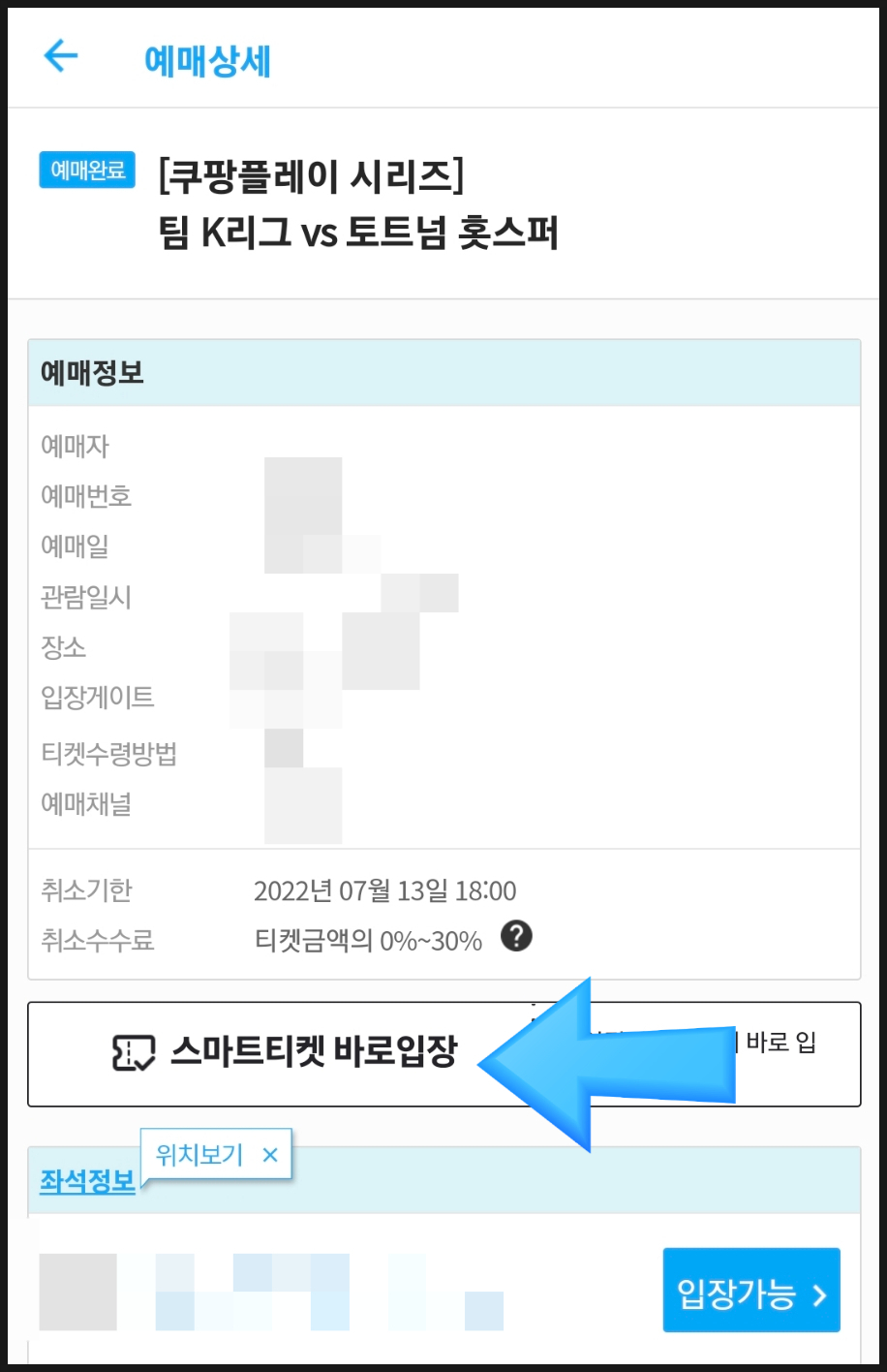 창을 닫고 다시 확인하려면 '스마트티켓 바로입장' 누르면 됩니다.