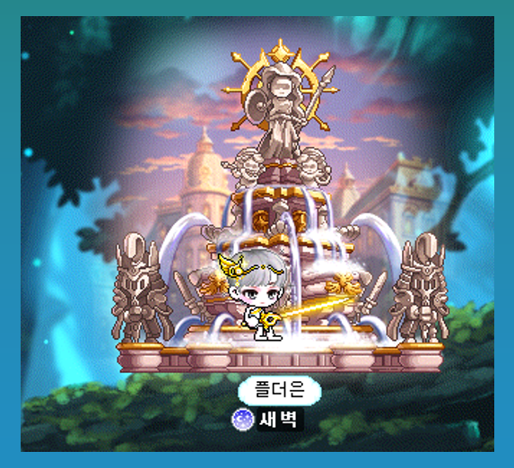 이처럼 리스토니아에 위치한 작은 분수대에 캐릭터가 앉아 있는 모습을 띄고 있습니다.