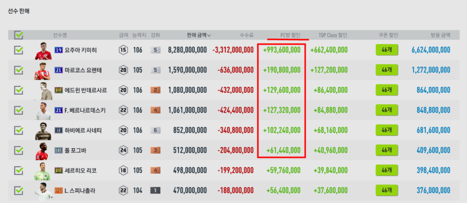 그 이유는 피시방에서 판매한 선수를 수령하면 'PC방 할인'이 적용되며 30% 할인을 적용한 가격에 BP를 수령할 수 있습니다.