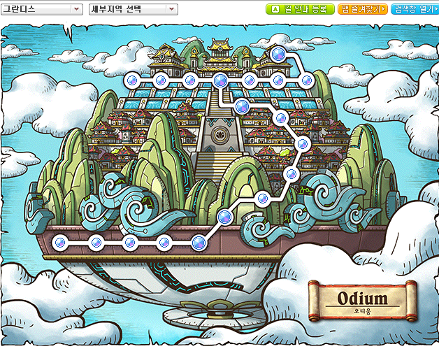 오디움은 '눈을 뜬 실험실 오디움'으로 그란디스 대륙의 3번째 지역이자 275레벨 이상만이 갈 수 있는 지역이다.