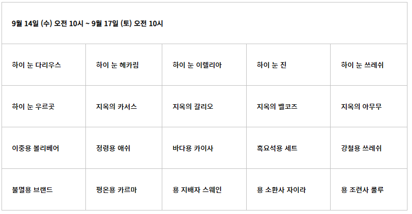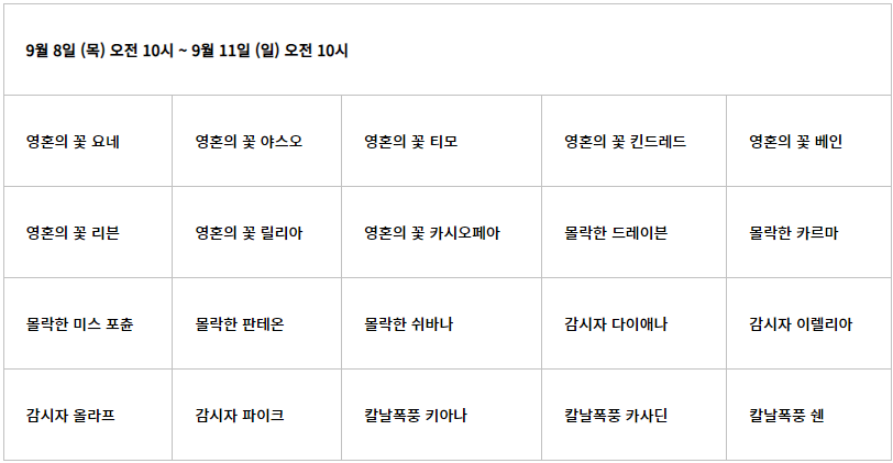 ■ 9월 5일 09:00부터 9월 18일 23:59까지 한정된 플레이어에게 선착순으로 적용되는 행사로, 조기 종료될 수 있습니다.