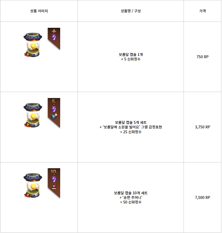 ■ ‘보름달 캡슐’ 5개 세트 구매 시 한정 ‘보름달에 소원을 빌어요’ 추석 특별 감정표현을, 10개 세트 구매 시 ‘송편 주머니’를 획득할 수 있습니다.