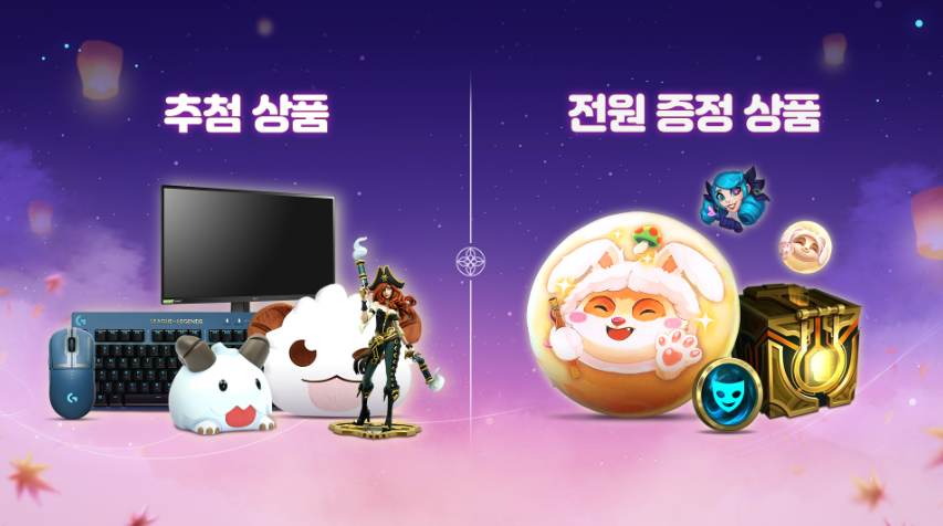 ■ 보름달을 사용하여 ‘LG 울트라기어 게이밍 모니터 (27인치)’, ‘로지텍 G PRO LoL 에디션 무선 게이밍 마우스 & 기계식 게이밍 키보드’, ‘보름달 티모 아이콘’ 등 다양한 경품에 응모할 수 있습니다.