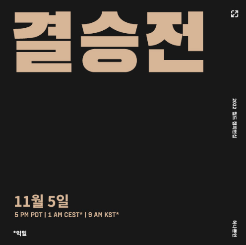 ■ 결승: 11월 5일 미국 캘리포니아주 샌프란시스코 체이스 센터(Chase Center)