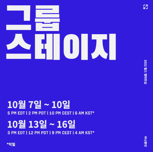 그룹 스테이지: 10월 7일~10일, 10월 13일~16일