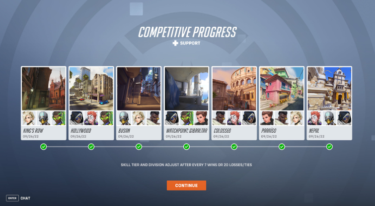 지난 7번, 또는 20번의 경기 결과를 한꺼번에 보면 게임 하나하나에 부담을 느끼지 않고, 자신의 경쟁전 성적을 더 정확하게 파악할 수 있습니다. 저희는 여러분이 오버워치 2의 경쟁전에 뛰어드는 첫날부터 실력이 점점 발전하고 있으며 그에 따른 보상을 받고 있다는 느낌을 받으셨으면 합니다.