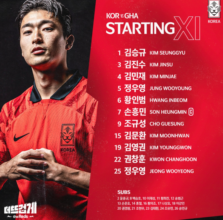 2022 카타르 월드컵 조별리그 H조 2차전 한국 가나 선발 명단이 공개되었습니다.