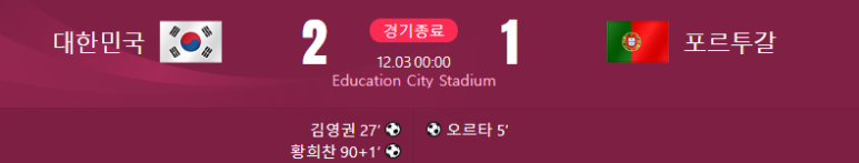 한국이 포르투갈을 2대1로 잡으며 16강 진출에 성공합니다!!!!